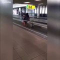 Poussé sur le tapis à baggages il galère à se relever à l'aéroport !