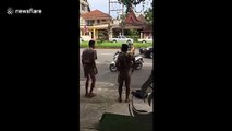 A very adorable visual came from Uttar Pradesh’s Deoria in which a policeman is seen praising a little girl and her mother for wearing helmets. Mother was going to drop her daughter to school by the scooty. The cop promised the little girl that he will go to her school to give her an award.