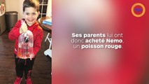 Un garçon veut faire un câlin à son poisson rouge