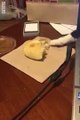 Ce chat futé tend sa patte pour voler le pain de son maitre... Trop mignon