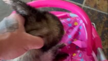 'He went NUTS!' - Furious ferret frantically fights his way out of a baby stroller