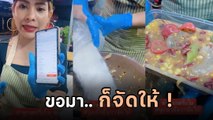 เมื่อลูกค้าสั่งยำกุ้งสดชูรสหมดห่อ แม่ค้าจัดให้ตามขอ ดูแล้วเสียวไปถึงไต
