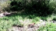 Ormanda yavrularıyla dolaşan ayı, fotokapana böyle saldırdı