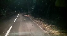 Quand une énorme famille de sangliers traverse la route