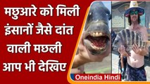 The fisherman has caught a huge 800 kg fish looking in strange shape .... It is being told that the price in the market is so much that when it was sold it sold for 20 lakh rupees. This fish is very rare which was not seen in this area before