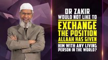 Dr Zakir would not like to Exchange the Position Allah has given him with any Living Person in the World?