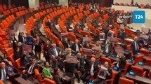 CHP'liler TBMM Genel Kurulu duvarlarına "Emekli 1000 lira sadaka istemiyor" dövizinin fotoğrafını astı, AKP'li Ceyda Bölünmez Çankırı kaldırdı
