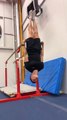 Guy Hangs Upside Down on Parallel Bars and Does Unique Handstand Jump