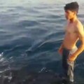Un homme capture un requin à mains nues