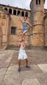 This woman showed off her strength and skill by doing a handstand on parallel bars. Then she moved her legs as if she were walking in the air while being upside down.