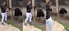 Este sinvergüenza mata con un AK 47 a un oso tibetano indefenso cautivo en un zoo