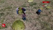 ( MUĞLA )- Muğla’nın sarı altınında hasat zamanı- Muğla'nın Ula ilçesine bağlı Gökova havzasında geleneksel yöntemlerle yetiştirilen, Japonlar geleneksel yemeği Suşi'de kullandığı sarı susamın hasadı başladı. MUĞLA