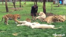 Un tigre sauve ce soigneur alors qu'un léopard le charge dans son dos
