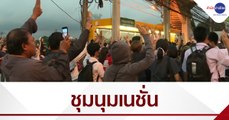 กลุ่มมวลชนปักหลักชุมนุมหน้า “เนชั่น”