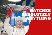 Rob Gronkowski proves the saying true as he catches a frozen fish tossed by a fan