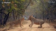 A beat guard at Gujarat's Gir Forest was going home at night when he encountered a lion sitting in the middle of the road, blocking his path. Mahesh Sondarva, the guard filmed a video of the big cat which he later shared with Indian Forest Service officer Dr Anshuman. The video was posted on Twitter by Dr Anshuman, who serves as the deputy conservator of forest (DCF) in Gir East. The 32-second video was filmed in a pitch-black area of the forest, with only the headlight of Sondarva's bike illuminating the road and revealing the lion calmly sitting on it. In the video, the forest guard can be heard 'pleading' with the lion in Gujarati to let him go home. While posting this video, Dr Anshuman called it a moment which makes Gir "an enigma wrapped in mystery". The video has garnered several views and 'likes' on the microblogging platform.
