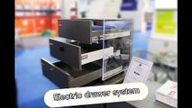 handle free electric servo remote control induction drawer system,simple operation,slightly touch with finger,drawer will automatically come out to you with everything in reach.