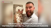 Travis Kelce Adorably Cheeses with His Friend Chandler Parsons' Baby — and Signs Boy's Cranial Helmet!