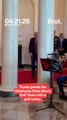 Brazilian UFC fighter jumps out of the cage after winning to shake Trump’s hand.