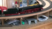 Ein kleiner Güterzug mit der Märklin BR 85 001 DB fährt durch meine kleine Modellbahnanlage. Die Tenderlok besitzt ihr spezielles Soundpaket, das individuell auf sie zugeschnitten ist - bei Märklin so nicht zu bekommen! Hochleistungskugellager reduzieren das Motorengeräusch auf die Hälfte, so dass sich ein sanfter, ruhiger Lauf ergibt - mit den wichtigsten Betriebsgeräuschen dieser schönen Dampflok.