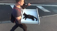 Un chaton tombe d'une voiture en plein sur la route