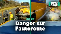 Les images effroyables de ce travailleur autoroutier échappant de peu à un camion lancé à toute vitesse