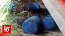 Nineteen barrels of chemicals, believed to be solvents and thinner, were found near the Sungai Langat river reserve land in Taman Reko, Kajang.