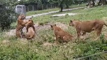 Lion vs Tiger (the tiger survived encounter with lionesses)