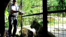 Lion and tiger feeding at the trucks