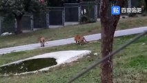 Lion and tiger scuffle recording at xi'an zoo