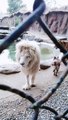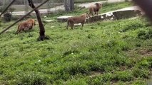 Lion and tiger interaction in Chinese Xi'an zoo - Lion protecting females