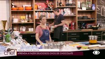 A chef chocolatière Renata Arassiro, da Renata Arassiro Chocolates (SP), ensina a preparar o ovo de Páscoa colorido de chocolate ao leite. Aprenda o passo a passo da pintura com manteiga de cacau colorida e a técnica da temperagem - indispensável para o preparo do chocolate de origem