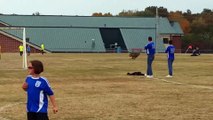 Un père pousse son fils pour arrêter un ballon lors d'un match de foot et fait le buzz - Regardez