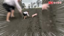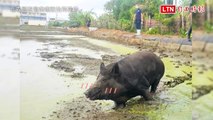 誰家小豬快來認領!大年初一街道狂飆 警察追豬逮捕還上銬 (讀者提供)