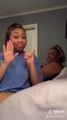 This daughter wanted to see her mom's reaction while she played a profane song. They both started rocking to it while the girl put out her ring finger. However, when her mom noticed it, she looked at her in dismay, thinking that she was showing her middle finger. After she cleared her mom's confusion, the duo continued to enjoy the music. The daughter then stuck out both her ring fingers while the concerned mother looked again to confirm if it was her middle finger.