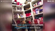 Isä säikäyttää tyttärensä täytetyllä pesukarhulla