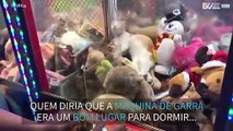 Gato dorme dentro de máquina de garra