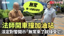 法師開車撞加油站 淡定對警開示「無常來了就接受它」(讀者提供)