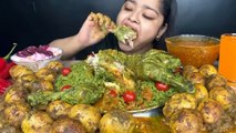 Mukbang Green Chicken Pulao with cherry Tomatoes