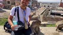 Guy feeding water to monkeys | funny video