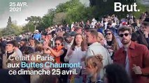 Des centaines de personnes se sont rassemblées lors d'une fête improvisée dans l e parc des Buttes - Chaumont à Paris, ce dimanche après-midi.