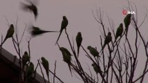 Kadıköy’de yeşil papağan sürüsü renkli görüntüler oluşturdu
