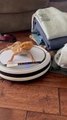 Cat Rides Around House on Robotic Vacuum Cleaner