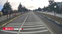 Kütahya'da yaya geçidindeki tehlikeli anlar araç kamerasınca kaydedildi