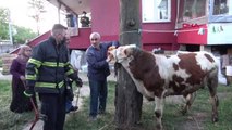Alınan bilgiye göre, Körpeşler Mahallesi 1493. Cadde'de Melahat Şenyürek'e ait evin bahçesindeki ahırda bulunan dananın boynuna bağlı olduğu zincir dolandı. Durumu fark eden Şenyürek komşusu Hakkı Demir'den yardım istedi. Ahıra gelen Demir, zinciri hayvanın boynundan çıkaramayınca itfaiyeden yardım istedi. Bölgeye gelen ekipler, bahçeye çıkardıkları dananın boynundaki zinciri kesti. Boynundan yaralanan hayvan, tedavi edilmek üzere veterinere götürüldü. Haber