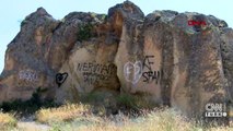 Türkiye'nin önemli turizm merkezlerinden olan Kapadokya'daki peribacalarına sprey boyalarla ile yazılar yazılarak tahrip edildi. Dünyada eşi benzeri bulunmayan doğa harikası yapılara düzenlenen çirkin saldırıya çok sayıda kişi tepki gösterdi.
