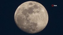 Gökyüzünde büyüleyen an! Şişkin ay Van Kalesi üzerinde yükseldi