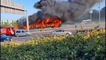İstanbul Havalimanı'nda turist yolcuları almak için gelen ve turizm firmasına ait olduğu öğrenilen araç henüz belirlenemeyen bir nedenle yanmaya başladı. Alev topuna dönen araç itfaiye ekiplerinin müdahalesi ile söndürülürken, patlamaların yaşandığı o anlar kameraya yansıdı. Olay, saat 00:30 sıralarında İstanbul Havalimanında meydana geldi. Edinilen bilgiye göre turist yolcuları almak için gelen yolcu terminaline gelen ve turizm firmasına ait olduğu öğrenilen VIP minibüs henüz belirlenemeyen bir nedenle yanmaya başladı. Araç sürücüsünün kendisini son anda dışarı attığı araç alev topuna döndü. Polis ekipleri güvenlik şeridi çekerek vatandaşları uzaklaştırarak önlem alırken, patlamanın yaşandığı VIP minibüs aracı daha sonra olay yerine gelen itfaiye ekipleri tarafından söndürüldü.
