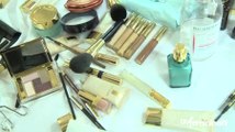 Pour le make-up Tom Pecheux a réalisé, avec les produits Lancôme, un maquillage plutôt nude avec une pointe de rock : le bout de l'oreille peint à l'eyeliner noir et pailletté, ainsi que des paillettes très fines sous les yeux. Pour le reste ? Un baume sur la bouche, du gloss sur les yeux et un teint healthy.