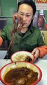 Thick yellow noodles with fresh beef cooked for breakfast | SOTHEA's family daily cooking food